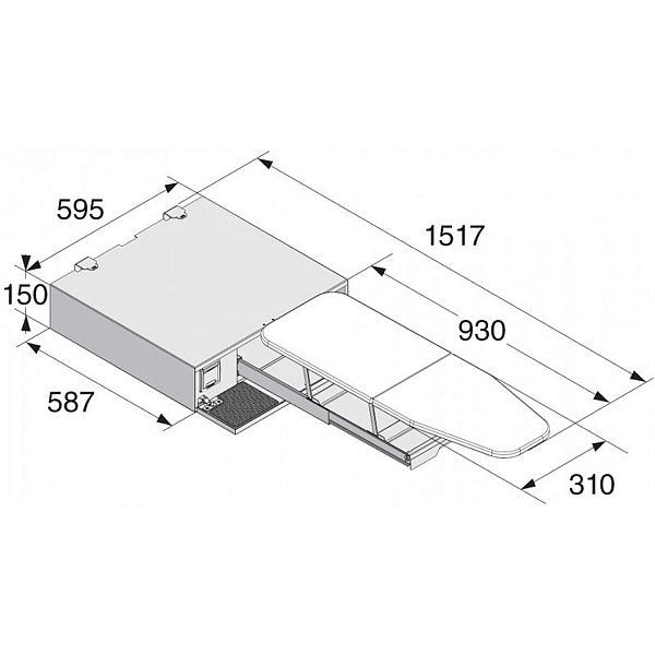 RST- Roostevaba terasest väljatõmmatav triikimislaud, mille saab panna pesumasina ja kuivati vahele ergonoomilisele kõrgusele.
