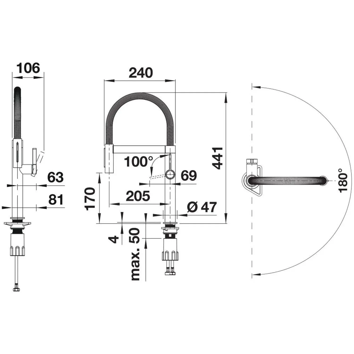Segisti on valmistatud elegantsest roostevabast terasest vedrust, mis tagab väljalaske vabaduse ja töö lihtsuse. Magnethoidik tagab vooliku kinnitamise mugavuse. Tänu kompaktsetele mõõtmetele saab segisti paigaldada köögikapi alla.