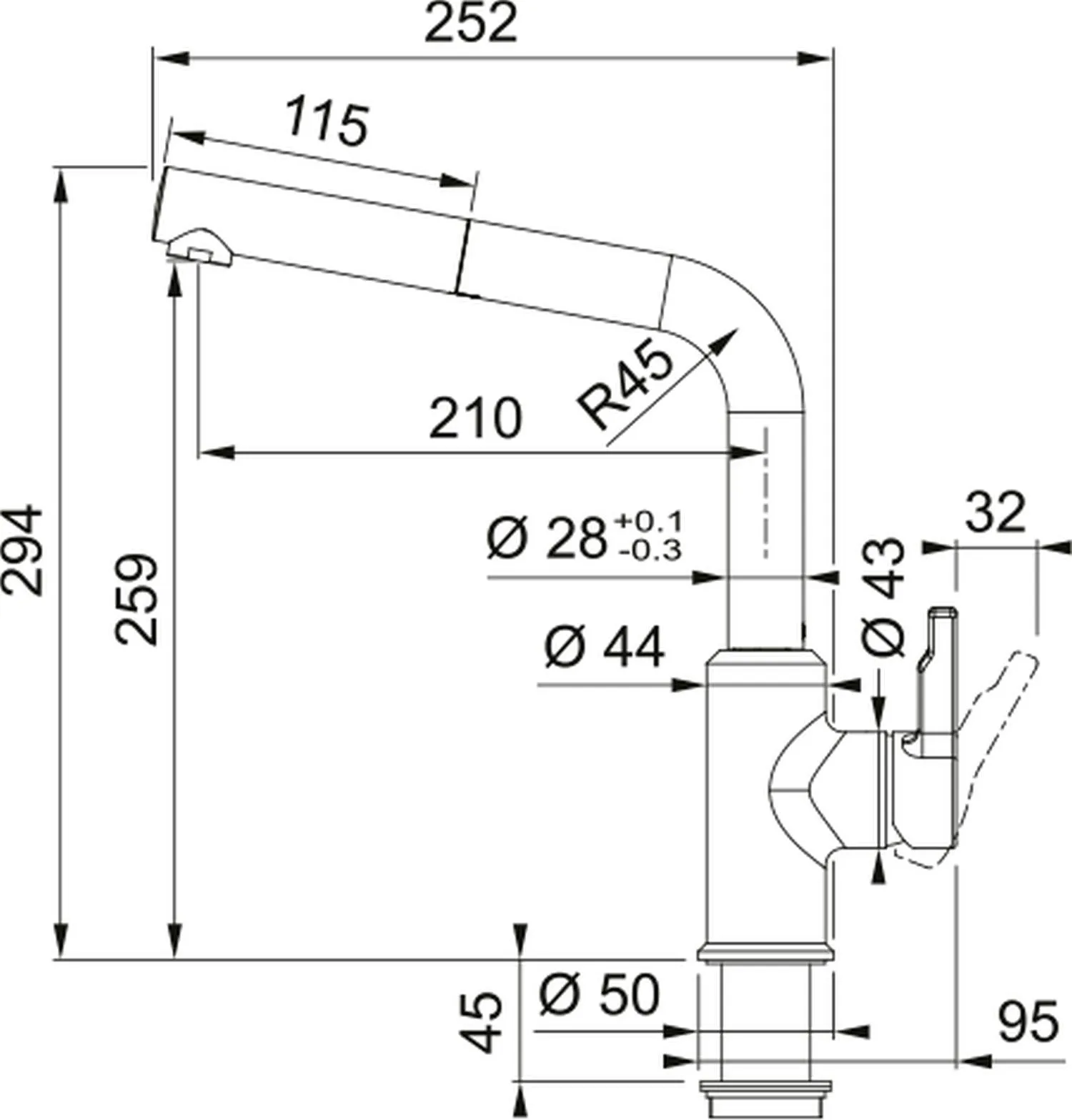 Ühe pöörleva käepideme hoovaga segisti